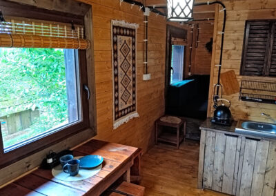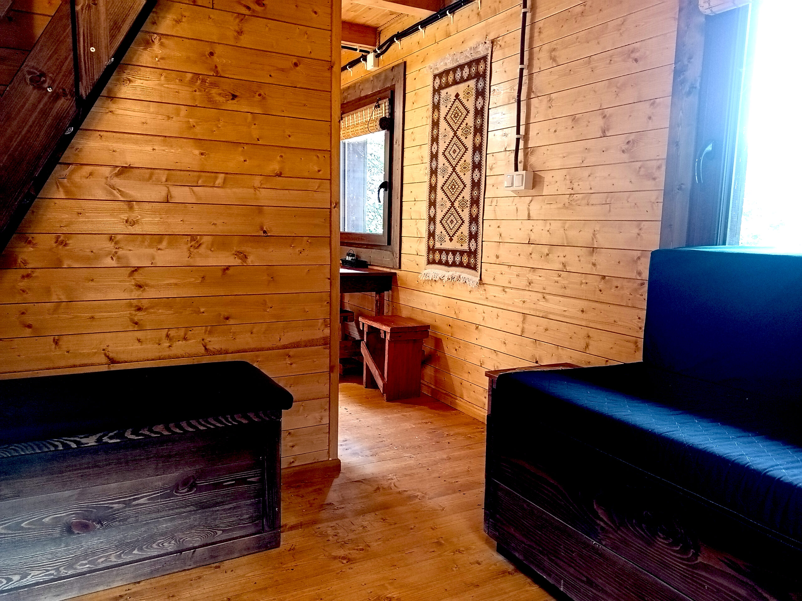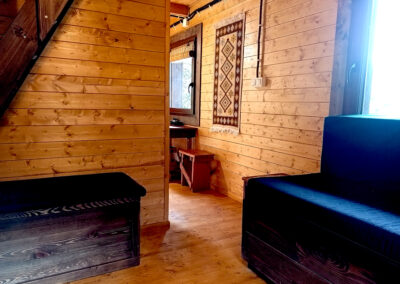 CHATKA – to cały domek na wyłączność. Do dyspozycji łazienka, aneks kuchenny z wyposażeniem, mini- salonik z opcją spania oraz sypialna antresola z 4-5 miejscami.